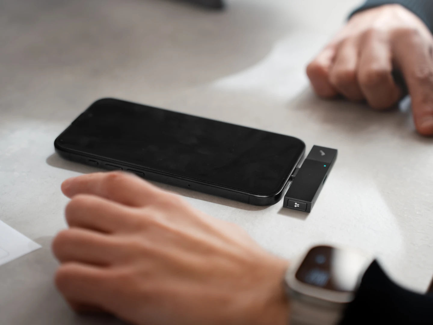BlueCatch™技術を搭載したHiDock P1 miniなら、お使いのイヤホンをつけたままスムーズに録音可能。スマホに差し込むだけで、移動中の会話も手軽に記録できます。